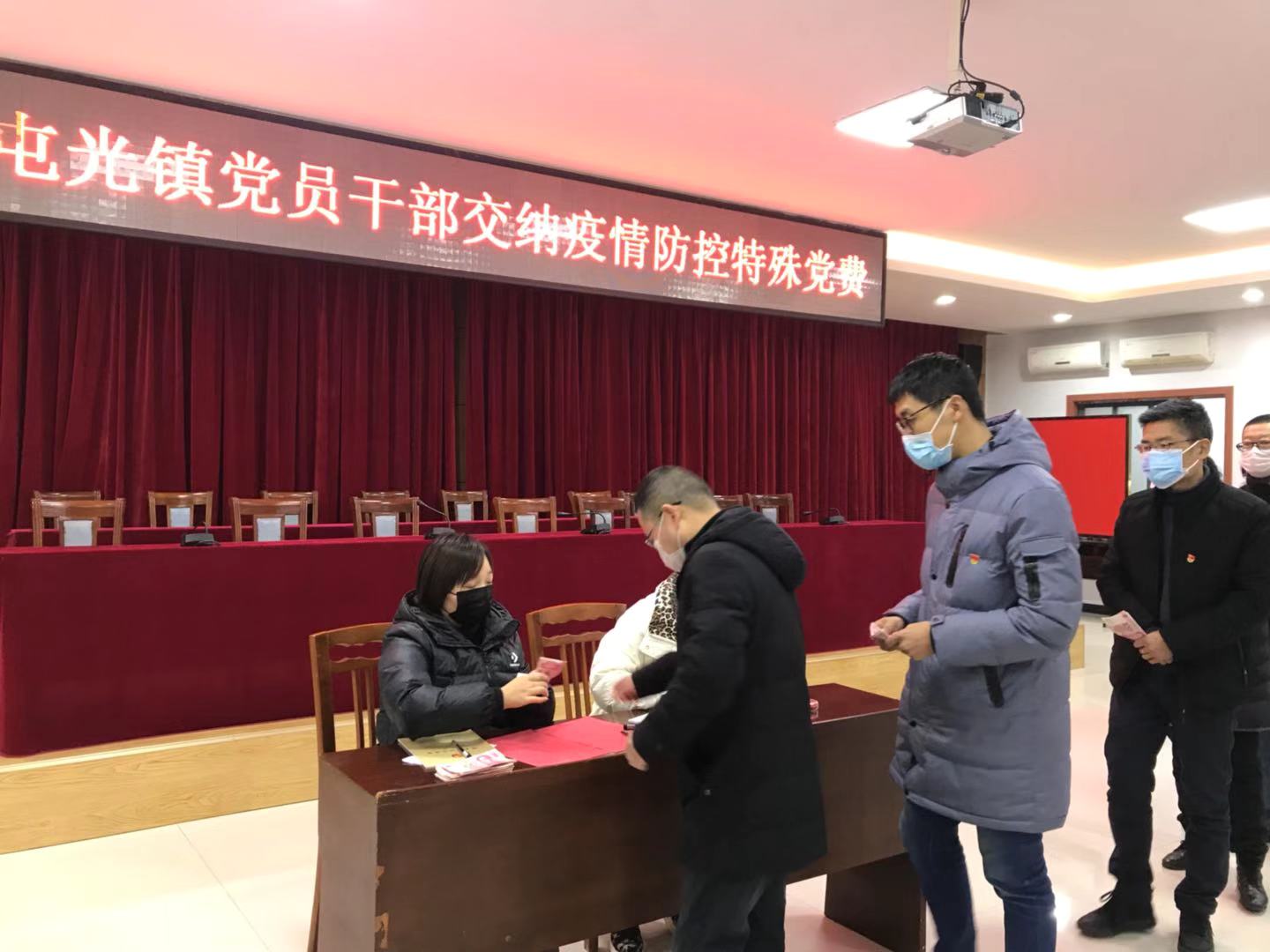 “100元、300元、500......”在屯溪區屯光鎮鎮政府會議室,一場交納疫情防控特殊黨費活動正在舉行。