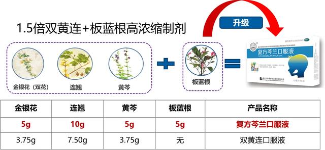 珍寶島復方芩蘭口服液由金銀花、黃芩、連翹、板藍根組成(雙黃連+板藍根)。金銀花清熱解毒,疏風解表;黃芩清熱燥濕,瀉火解毒,用於外部濕熱邪毒入肺引起的肺熱咳嗽,高熱煩渴。板藍根清熱解毒,涼血消腫;連翹清熱解毒,消腫散結,均可用於外邪入里入血而引起高熱不退以及熱毒蘊結於肺而造成的咳嗽胸痛等肺部感染癥狀。對外毒內侵造成的肺部病變有較好的消腫抗炎和修復能力。