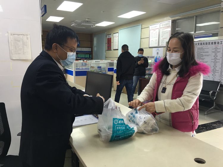 2020年1月31日上午,橫崗街道某藥行負責人劉女士將59個醫用口罩送至松柏社區黨委書記李紅勝手中,在資源緊缺之際,想方設法採購物資,將物資送給有需要的人,希望能為抗擊疫情盡綿薄之力。劉女士表示,歡迎轄區的保潔員和市容巡查員每日到店免費領取口罩及板藍根沖劑,助力開展疫情防控工作。