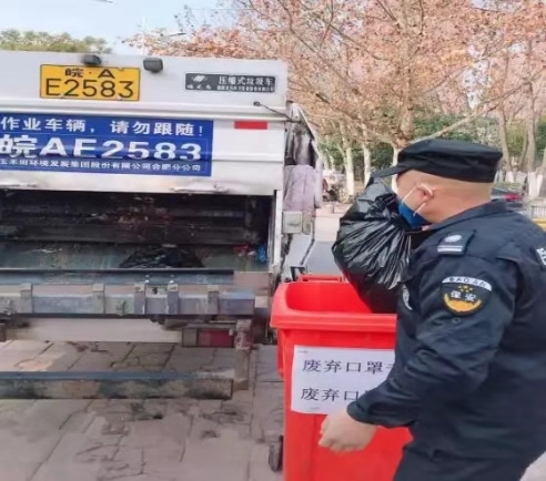 合肥經開區城管部門定時收集運轉廢棄口罩