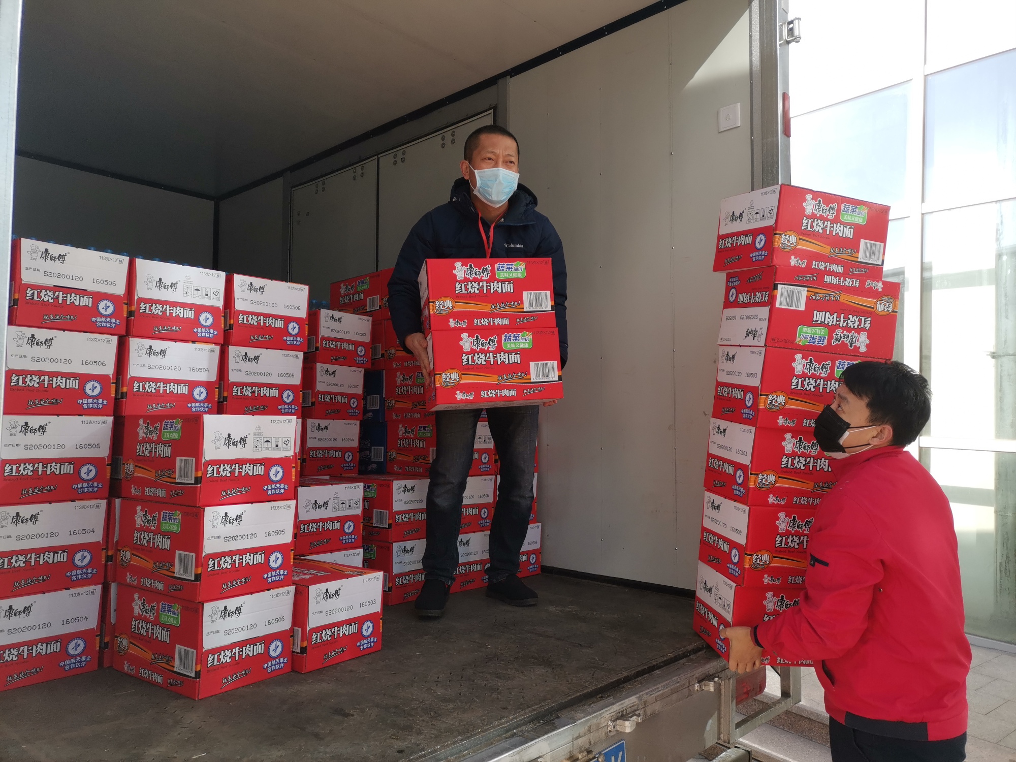 2月1日上午康師傅控股有限公司(東北地區)董事長姜克良帶隊將即食麵150箱、礦物質水150箱、純水樂200箱送抵瀋陽金穀人力產業園大廳。同一時間,瀋陽工業泵製造有限公司總經理郝迎宇也將十萬元捐贈款匯入了紅十字會的賬戶。