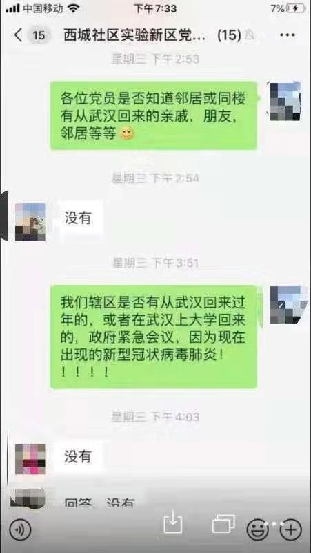 西城社區通過微信群了解轄區是否有武漢返鄉人員