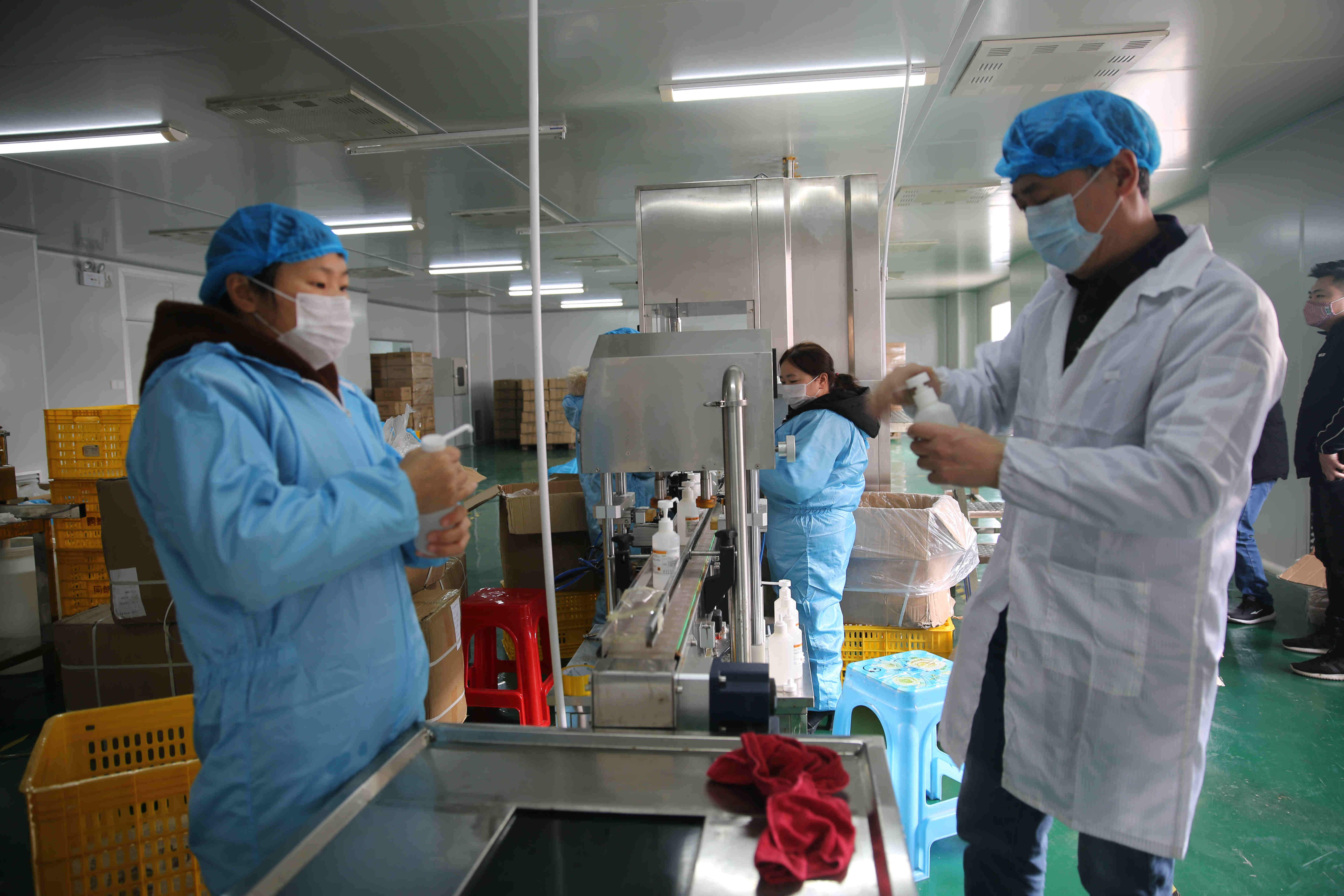【香港商報網訊】「再苦再累都要咬緊牙關,今天我們的目標是生產8000瓶,能多生產一瓶就多一個人得到保護。」2月3日清晨,湖南和思生物技術有限公司的生產車間里熱火朝天,公司負責人朱春林正鼓勵員工抓緊生產免洗消毒殺菌液。