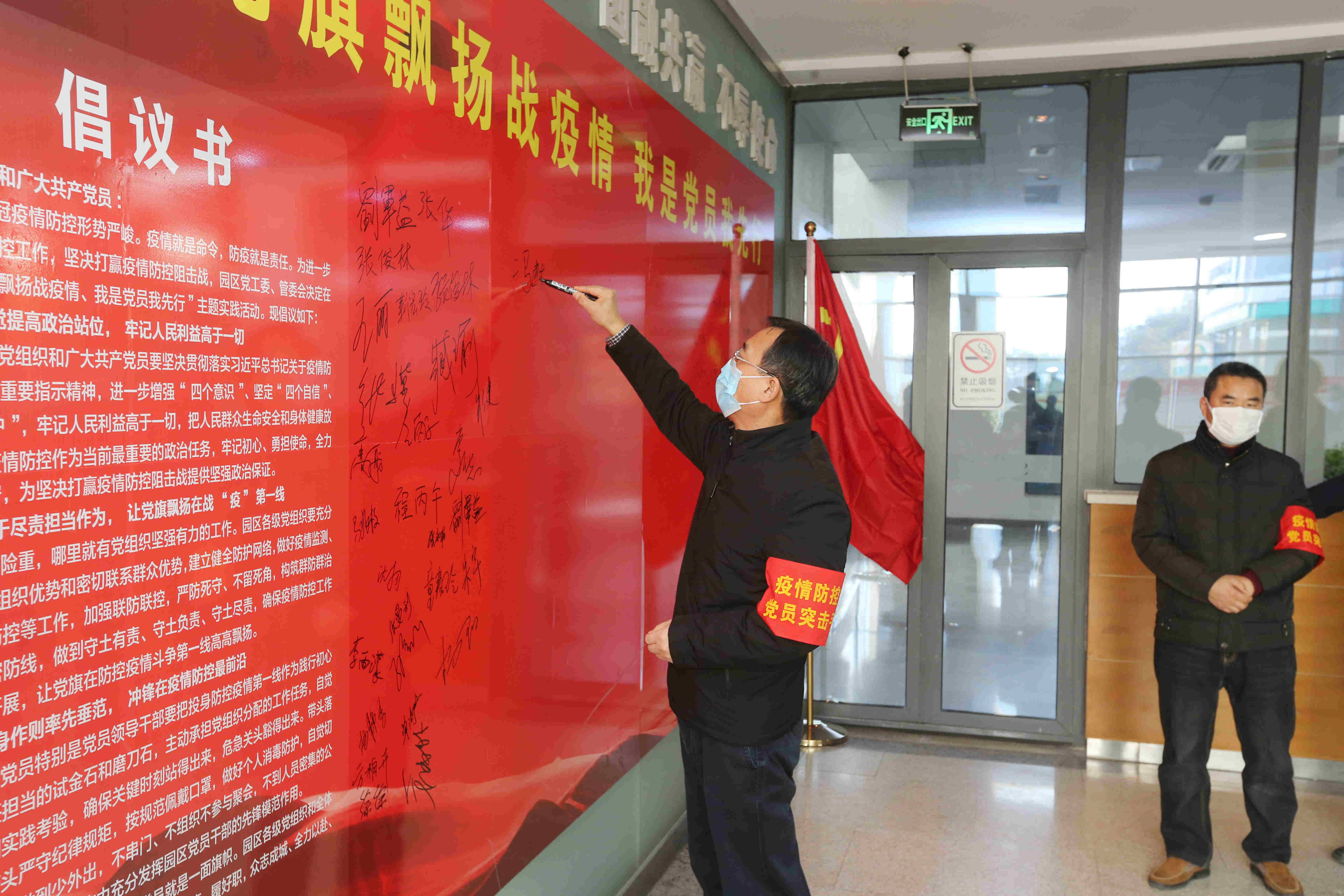 宿遷市政府黨組成員、蘇宿園區黨工委書記、管委會主任馮建林介紹,為鞏固「零感染、打勝仗」的防疫「戰果」,確保春節假日後機關事業單位安全健康運轉、企業復工防疫「兩不誤」,蘇宿園區黨工委決定在全區開展「黨旗飄揚戰疫情、我是黨員我先行」主題實踐活動,號召各級黨組織和全體黨員幹部立即行動起來,充分發揮戰鬥堡壘和先鋒模範作用,為堅決打贏疫情防控阻擊戰提供堅強政治保證。