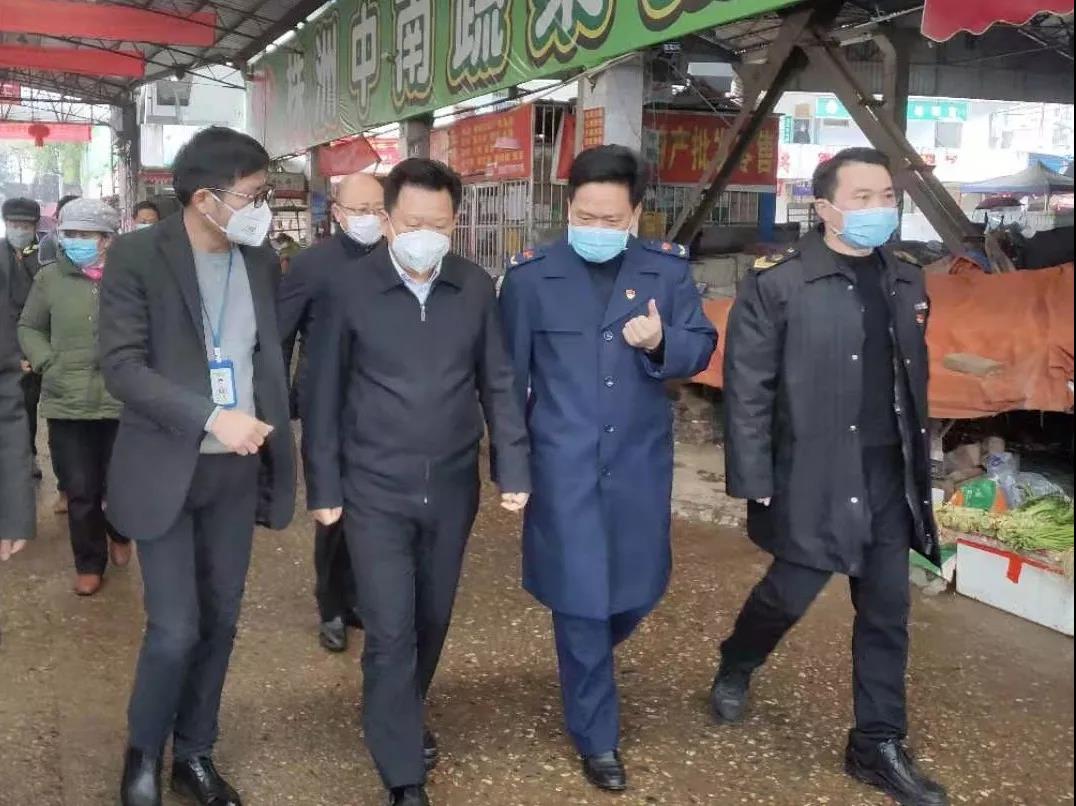 隨後督察組一行先後來到中南蔬菜批發市場、賀家土藍海農貿市場,檢查市場方落實「一日一清場、一日一消毒、一日一巡查」情況,市場內是否存在野生動物交易、宰殺活禽等活體動物情況。檢查發現,以上市場均已杜絕野生、活禽動物交易,基本確保了供應充足、物價平抑。