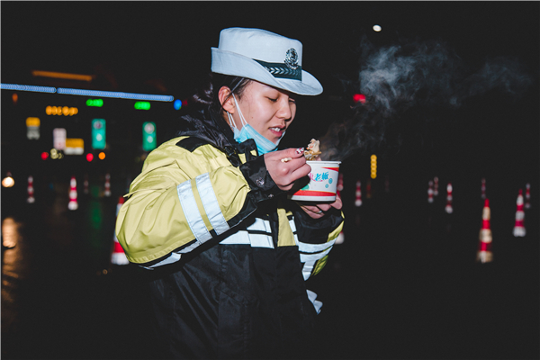 交警吃上熱乎乎的餃子