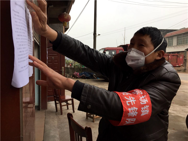 宗場鎮黨員羅禮全張貼疫情防控宣傳單
