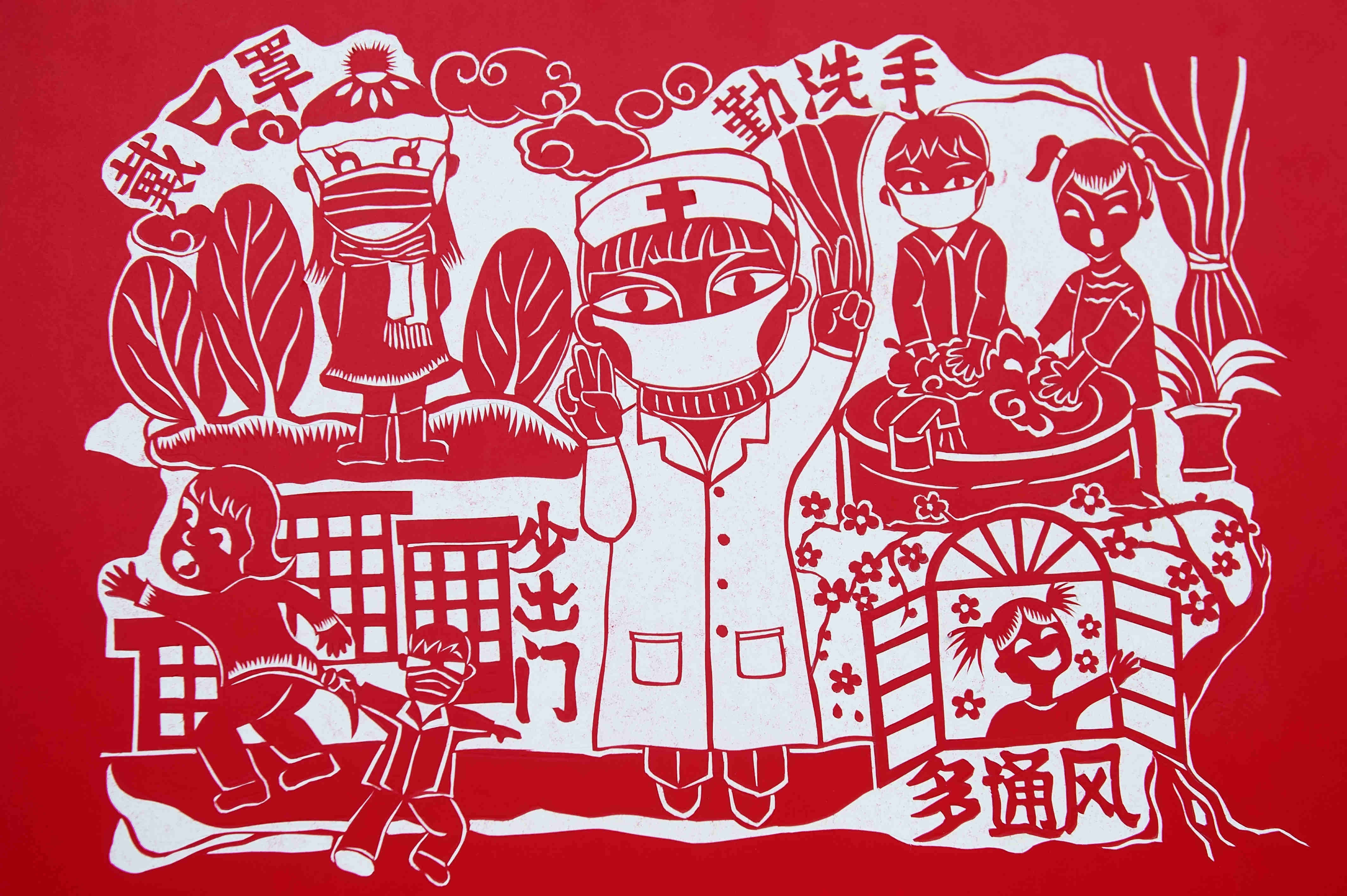 正值抗擊疫情期間,湖南省省級非遺保護項目「衡東剪紙」傳承人廖哲定呆在家裡卻沒有閑着,她和82歲的父親、28歲的女兒三代人共同創作"防疫"剪紙,作品採用剪紙藝術的形式,用現代剪紙美術剪刻的手法,精心創作了抗擊疫情的剪紙宣傳畫,用直觀通俗易懂的畫面,呼籲市民"少出門,多通風;戴口罩,勤洗手",積極宣傳健康防疫。 (李靚 何雯)