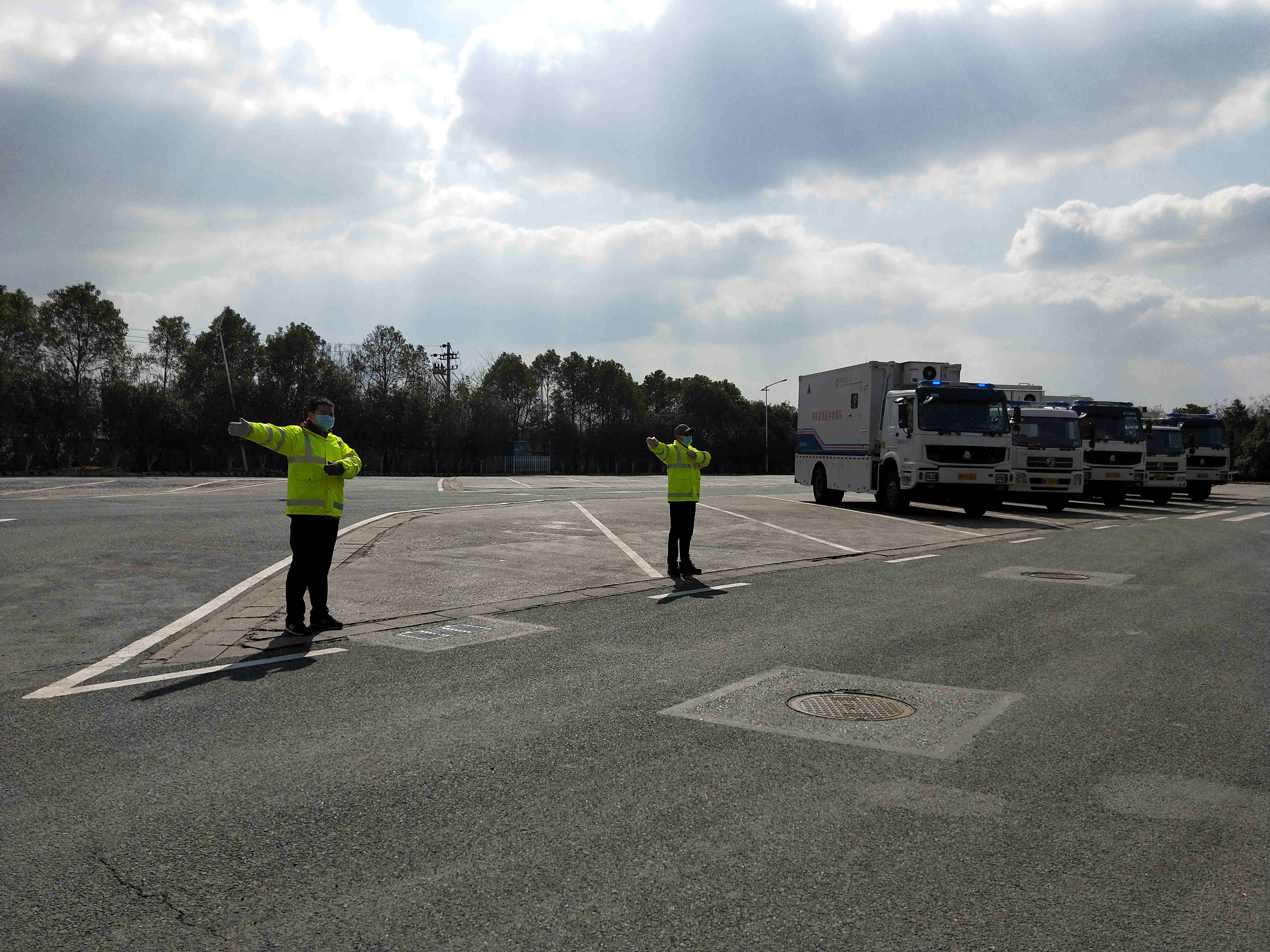 考慮到運輸物資的重要性和緊迫性,九江高速路政支隊安排兩台路政執法車輛一前一後護航。一台在車隊右前方300米做引導車負責車隊平穩通行,一台在車隊後方示意其他車輛不要隨意超車。13點45分許,車隊由贛鄂省界九江長江二橋收費站駛離江西,進入湖北境內。