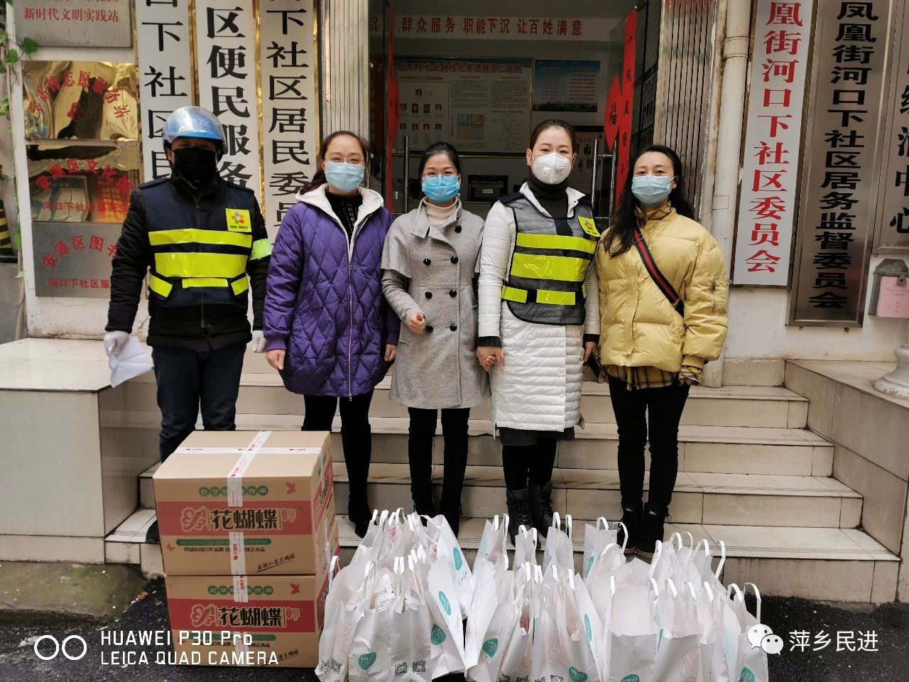 2月4日上午,民進會員、世全食美貿易有限公司董事長、阿里巴巴「餓了么」萍鄉運營中心總經理鄧丹帶領萍鄉「餓了么」團隊將40份蔬菜送到被隔離居民家中,這些蔬菜是由世全食美貿易有限公司出資從湘東區排上鎮政府扶貧點貧困戶處購買的,此舉不僅有助於解決貧困戶蔬菜銷量問題,同時也及時地幫助了被隔離居民緩解了「買菜難」問題。此外,「餓了么」萍鄉團隊還提供了免費代送公益服務,將「可瑞朵的包子鋪」、「花蝴蝶」等企業的捐贈物資送至萍鄉市21個社區。