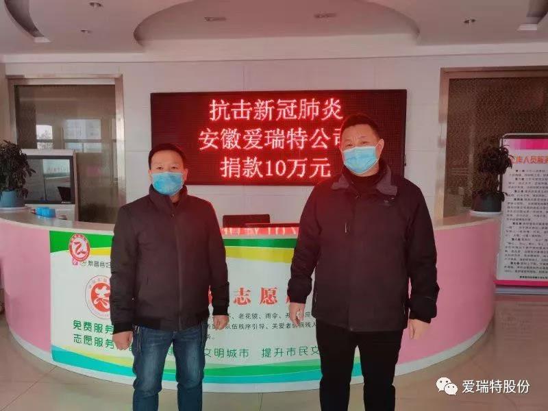 愛瑞特向繁昌縣疫情防控中心捐款10萬元