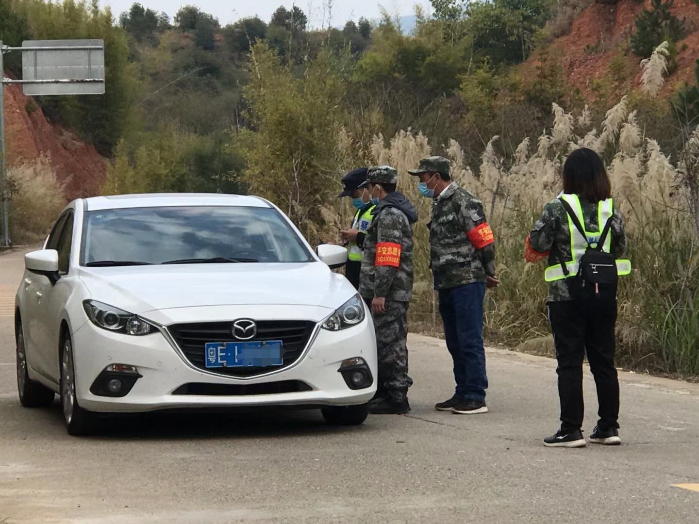 鍾玉高(右三)和同事在疫情防控勸導卡口執勤