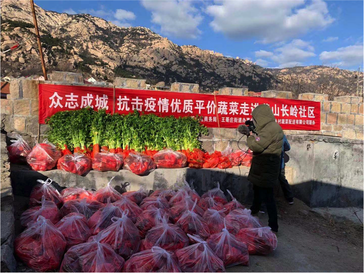 疫情發生以來,附近的王哥庄大集關閉,如何保障和豐富附近七、八個社區村民的“菜籃子”,青島市商務局聯合嶗山區商務局協調對接了都市鄉村政府配菜公司。