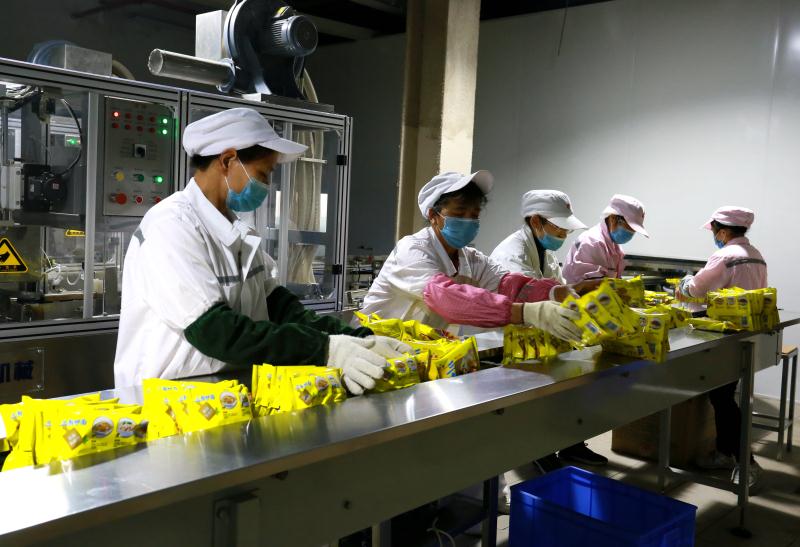 已復工的金光食品公司里,工人們有序投入工作