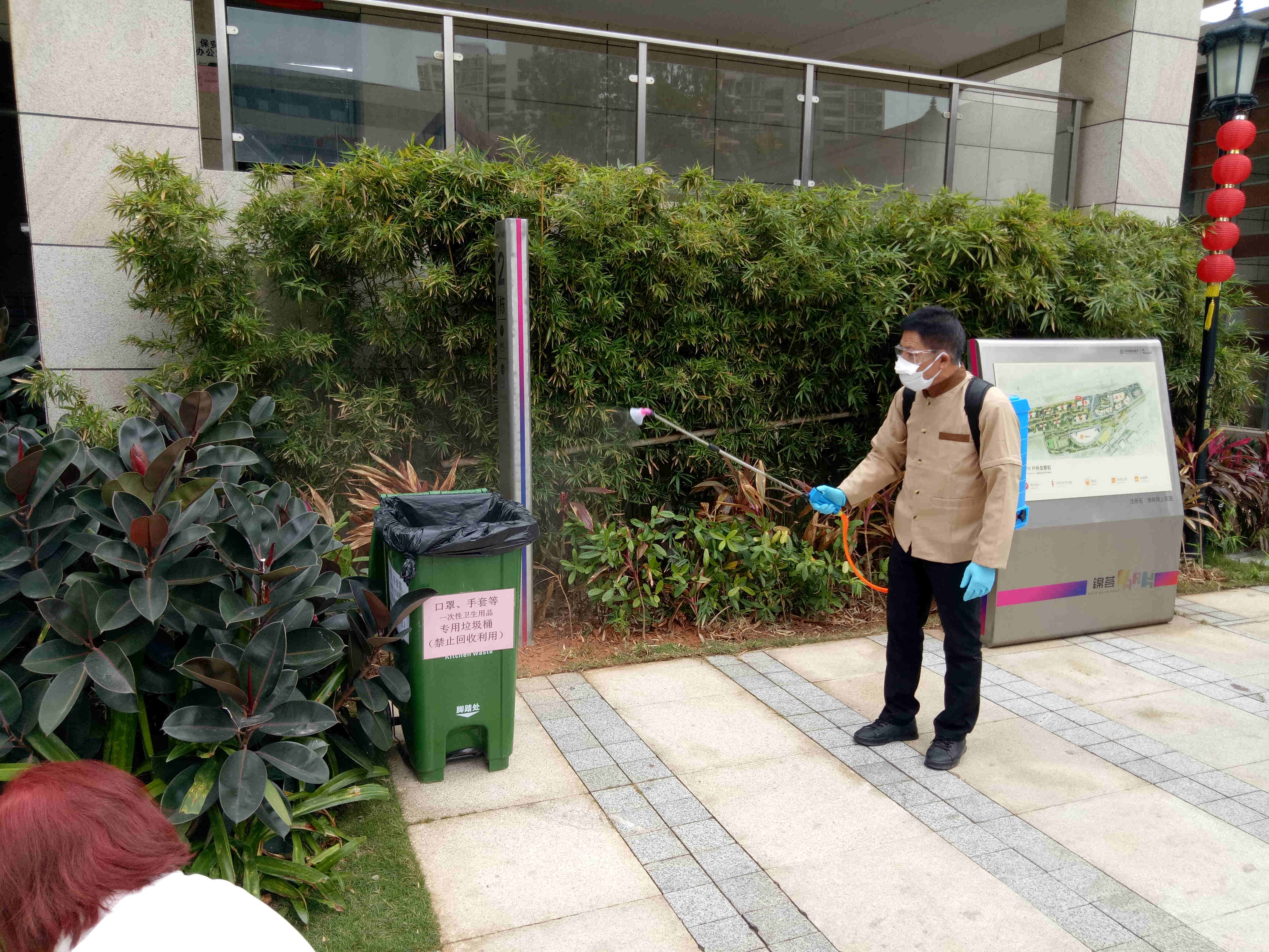 在錦上花園小區,每棟單元樓的電梯口都貼有環境清潔消毒記錄。據介紹,該小區嚴格制定和落實消毒制度,按照消毒流程進行高頻次消毒。對小區公共場地、水溝、景觀水池、消防樓道、休閑鍛煉器材、綠化等每天消毒2次,對垃圾桶、大門拉手、電梯等接觸頻次高且感染風險大的設施,每2小時消毒一次。「現在小區每天在各個角落進行全面消毒,雖然工作量劇增,但為了大家的健康,辛苦一點很值得。」小區物業消殺人員告訴記者,管理處在小區還設置了3處廢棄口罩與手套集中投放垃圾桶,並定期消毒和銷 毀。