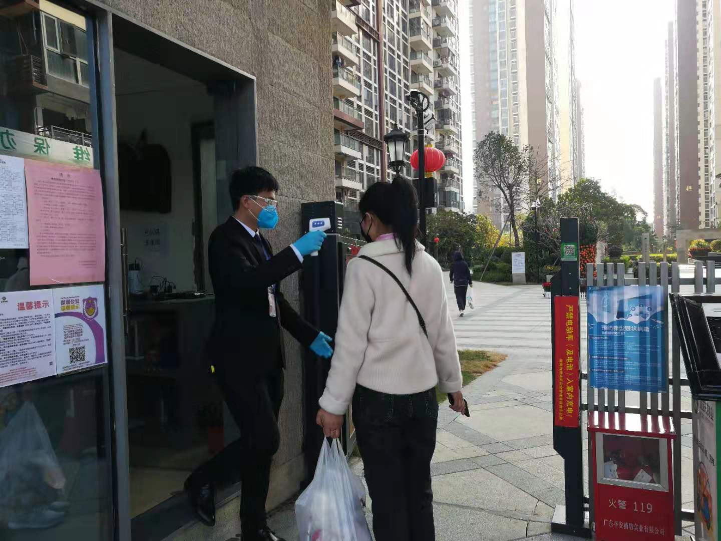 「來,請配合我們的工作,檢測下體溫,做一下登記。」這是小區安保人員每天對進出小區的住戶必說的一句話。據該小區物業中心主任畢助民介紹,他們在小區主要出入口設置體溫檢測站點,對進入小區的人員、車輛實行「逢人必檢、逢車必查、逢疫情發生地返深住戶必報」制度,預防小區出現疫情傳播現象,並做好流動人員的信息排查和登記。經統計,該小區日均對小區人員及車輛體溫檢測達850人次。
