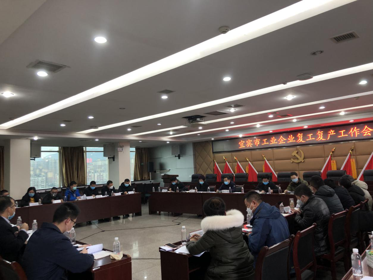 2月4日,宜賓市召開供應企業復工復產工作會(市工軍局供圖)