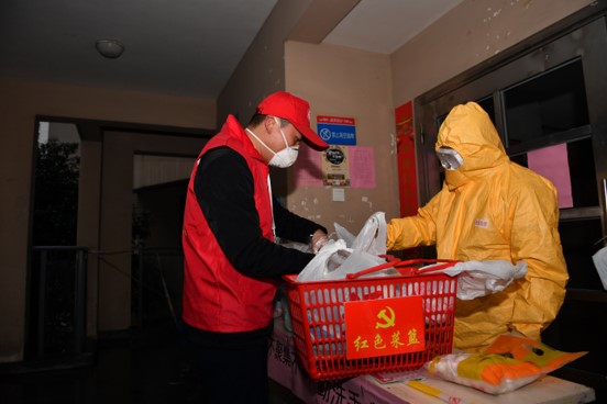 防控疫情不忘保民生。連日來,安徽省,合肥市蜀山區筆架山街道開展「紅色菜籃送到家」便民服務,此舉旨在滿足隔離群眾的日常生活物資需求。每天,社區工作人員和黨員志願者每天通過電話微信聯繫居家隔離居民,對他們的生活需求及時響應,送去麵粉、肉、油、奶粉、蔬菜等生活必需品,同時還會將口罩和消毒水等防疫用品放在其中,解決了他們出行不便的困難,增強隔離居民戰「疫」信心。(何斌 朱琛琛 柏永)