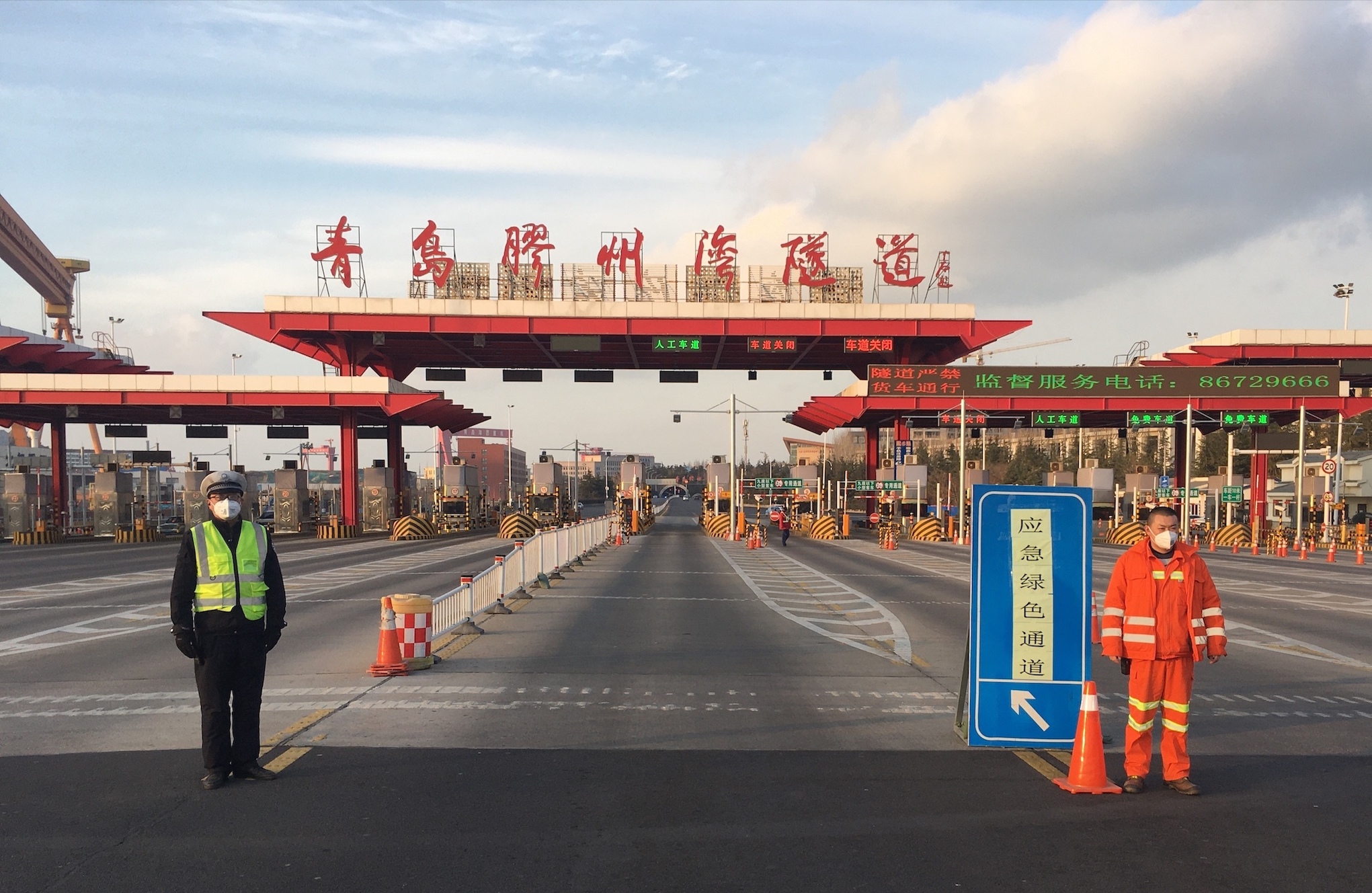據悉,國信隧道人積極對接青島市防疫指揮部,啟動公司應急保障預案,在隧道收費站雙向開闢兩條應急綠色通道,並安排專人值守,用手中的指揮棒,指引着防疫救援人員、車輛和物資的快速通行。