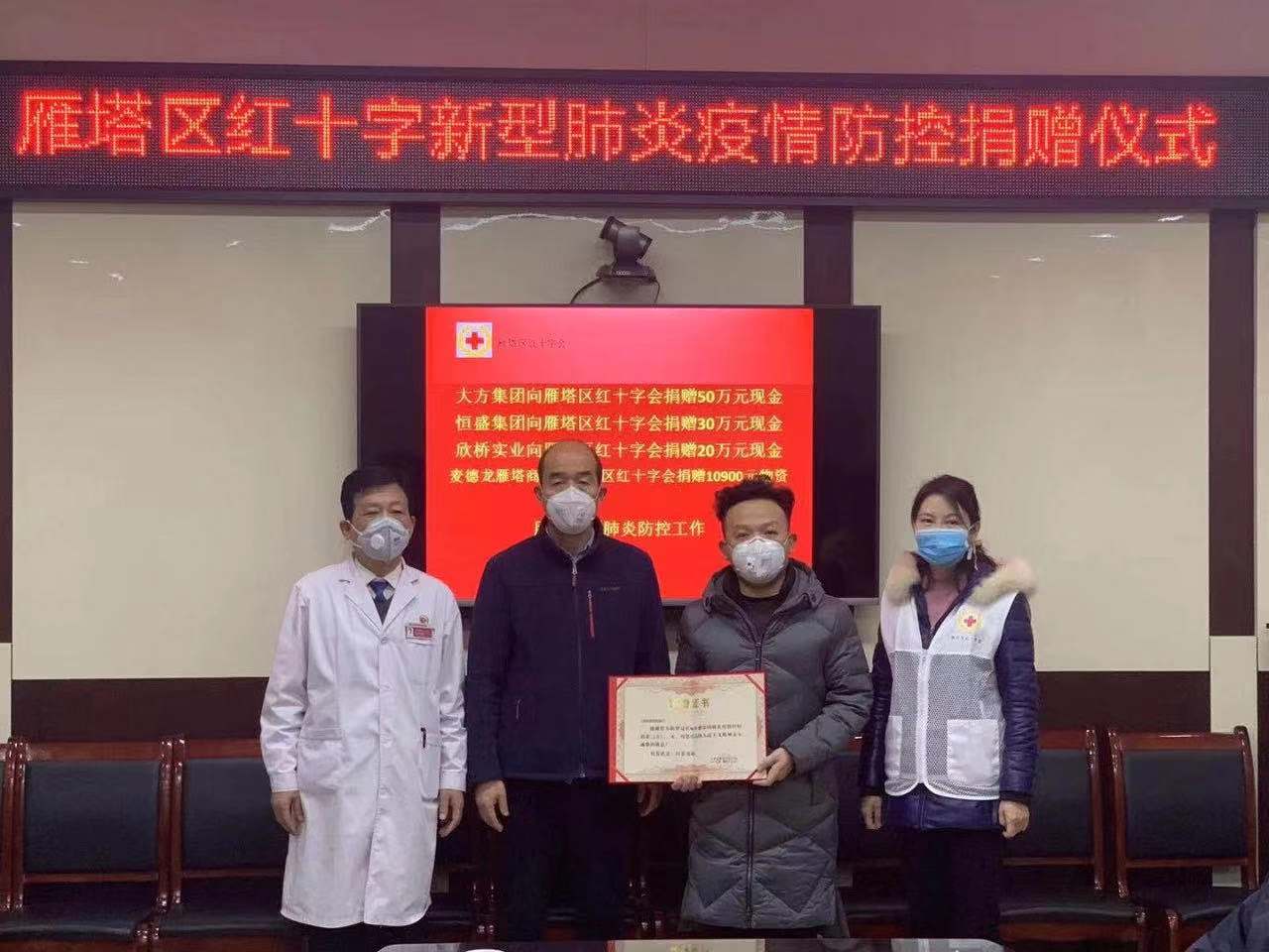 據了解,疫情發生後,大明宮實業集團攜手西安大明宮建材家居股份有限公司各捐贈500萬元;陝西華秦科技實業有限公司董事長折生陽向陝西慈善協會、西安慈善會各捐100萬元,向榆林商會捐款2萬元,共捐款202萬元;榮民控股集團向西安捐款100萬元,向安康捐款100萬元,向湖北省黃岡市中心醫院大別山區域醫療中心定點捐款300萬元;榮華集團捐款捐物200萬元,向西安市內近百個社區2800餘戶60歲以上居家老人和防控一線的工作者們免費發放「愛心物資箱」5000份;金花集團捐贈抗擊疫情藥品700萬元;億傑控股集團在陝西省慈善協會設立2000萬元防控專項基金,並捐贈100萬元現金用於預防和治療新型冠狀肺炎;大唐西市集團首筆捐款600萬;石羊集團通過陝西省紅十字會捐資200萬元;大方集團西安控股有限公司籌集善款150萬元,用於馳援武漢醫療隊的防疫防護;邁科集團捐贈100萬元;隆基股份公司從中國紅十字會基金中向陝西赴鄂救援醫療隊每人日均捐助1000元。