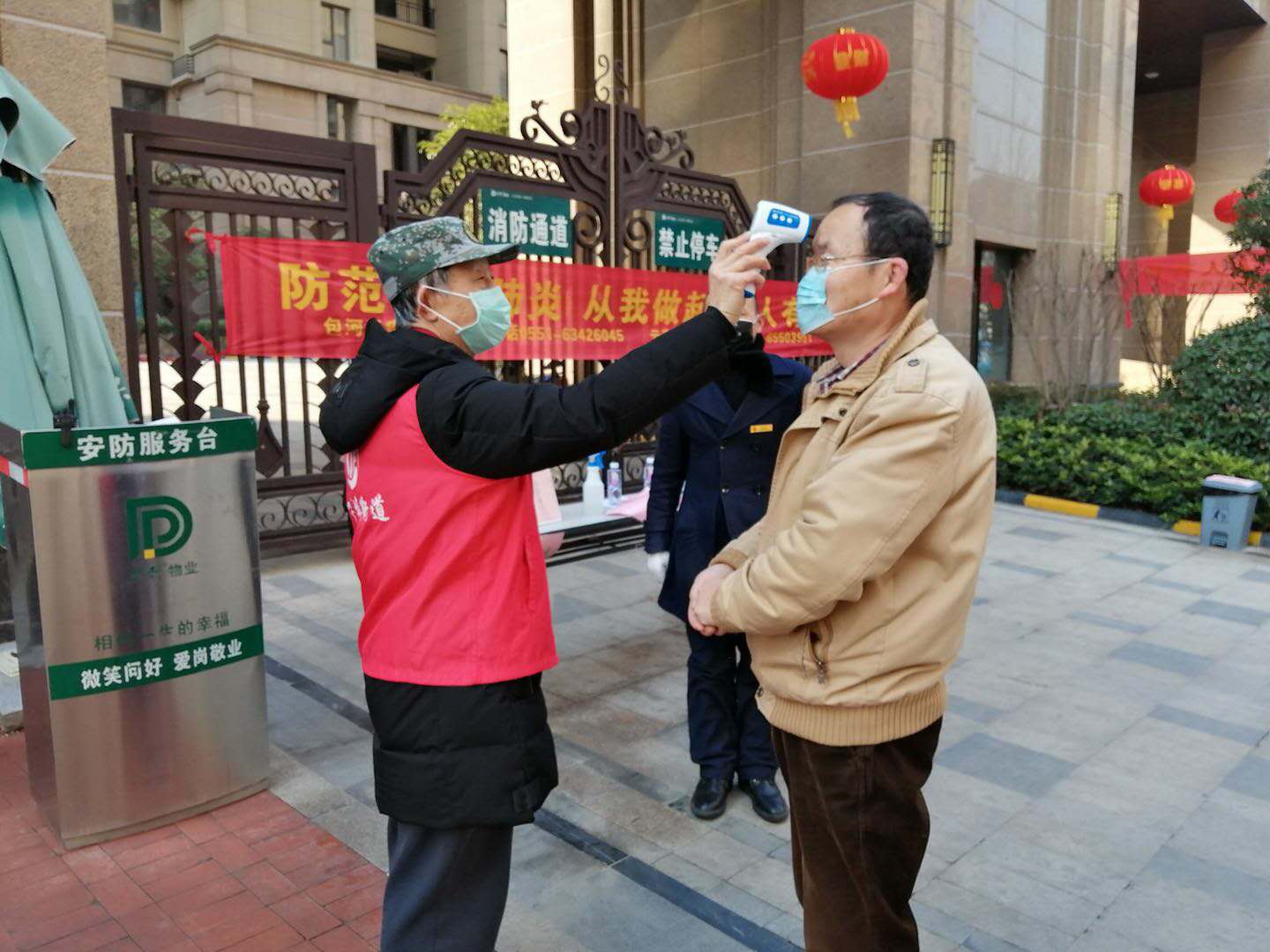 「戴口罩、少聚集、勤洗手……」還沒走到濱湖欣園門口,遠遠的就聽到了大喇叭在循環播放疫情防控知識。入口門崗處,居民主動停下登記信息和體溫測量。濱湖欣園是包河區一座典型的農村居民回遷安置小區,共有5000多戶,12000人,老年人尤多。正值元宵節,小區內一反往日居民「走家串戶」的熱鬧景象,廣場上空無一人。
