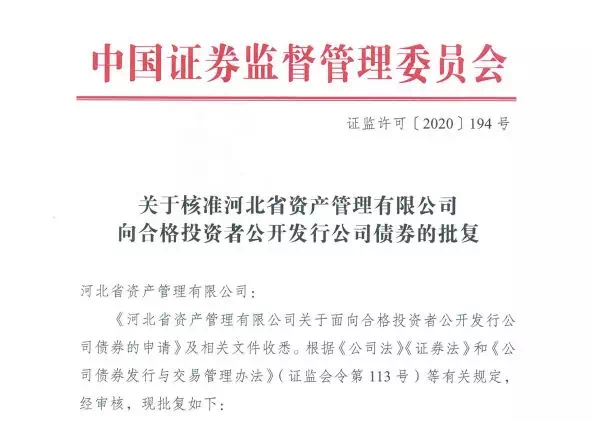 河北資管5.5億元公開發行公司債券獲得證監會批復
