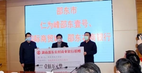 【香港商報網訊】2月7日,湖南邵東市仁為峰、邵東農商銀行分別向邵東市紅十字會捐贈100萬元,用於支援邵東抗擊疫情。