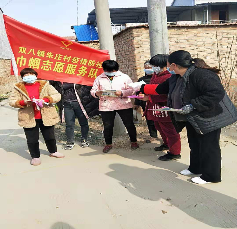 商丘市梁園區雙八鎮各村婦聯幹部紛紛放棄春節假期,組織巾幗志願者積極投入到疫情防控的第一線,14個行政村的婦聯主席自願參與各村的卡點執勤工作,按照「村不漏戶、戶不漏人」的要求,認真排查從湖北,特別是武漢返鄉人員和近兩周到過武漢的人員。除執勤外,她們帶領志願者走家入戶發放「疫情防控明白單」,向群眾講解政策、普及防控知識。
