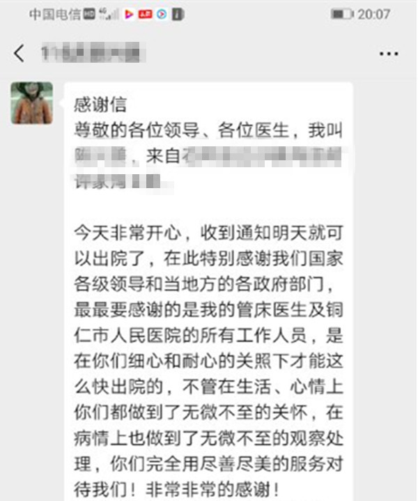 治癒患者發來感謝信
