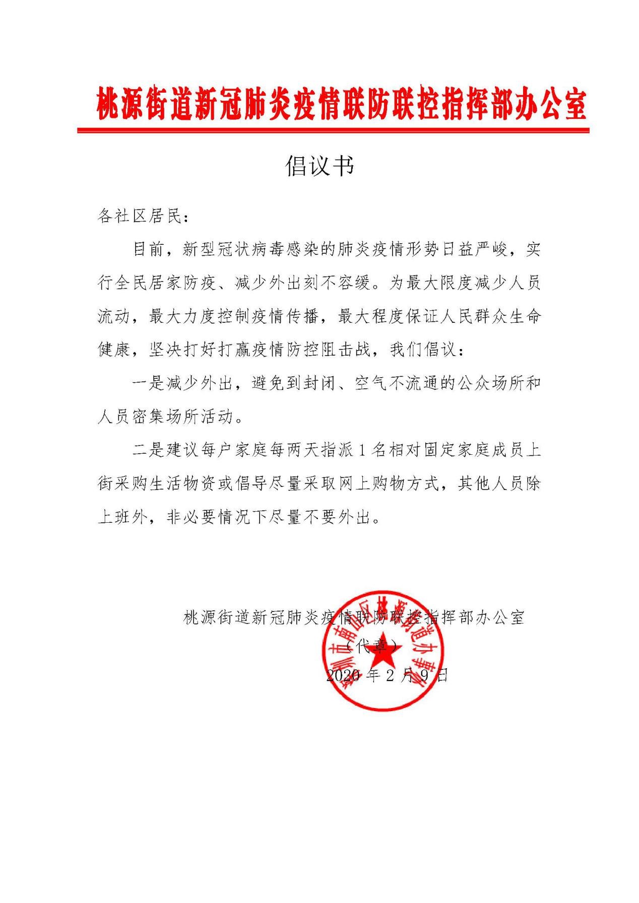 桃源街道《倡議書》