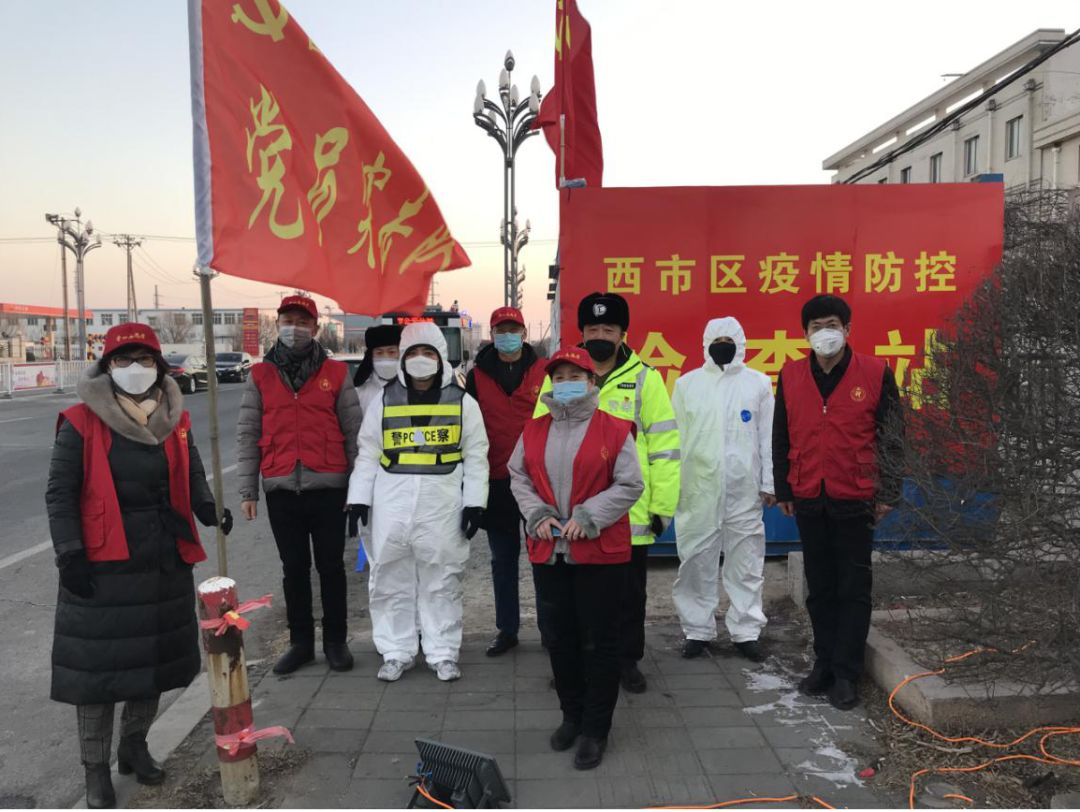 營口市西市區城區建設服務中心的16名黨員請戰加入的抗擊疫情值班小組,24小時輪崗,為來往車輛做防控檢查。