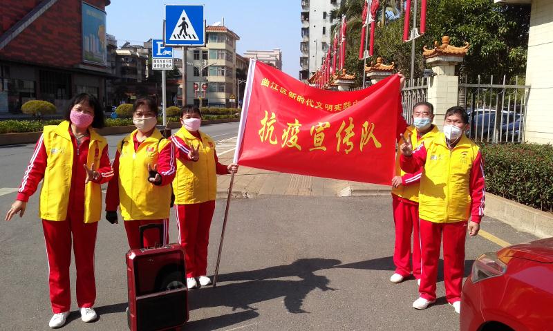 自疫情發生後,曲江客家文化協會的文藝工作者積極發揮文藝輕騎兵的作用,用山歌的形式大力宣傳防疫知識和有效的防護措施。截止目前,文藝輕騎兵已創作出《抗疫情保健康》《新年也不去探親》《口罩戴上把病擋》等膾炙人口的山歌20餘首。客家文化協會將這些山歌錄製成U盤,分發到城區各社區和鎮(街),各社區和鎮(街)各顯神通,有的用「大聲公」,有的用拉杆音箱將山歌循環播放,有效地提升了群眾的防控意識。