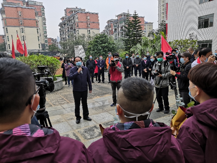 【香港商報網訊】馳援湖北,廣東江門再派出13人醫療隊,2月11日上午,江門市在該市衛健局為13名醫護人員舉行簡單而熱烈的歡送儀式。這批次醫護人員來自江門市中心醫院、江門五邑中醫院和江門市人民醫院,包括4名醫生和9名護士(護師)。江門市赴湖北抗疫醫療隊第一批15名醫護人員已於2月9日馳援湖北開展抗疫工作。