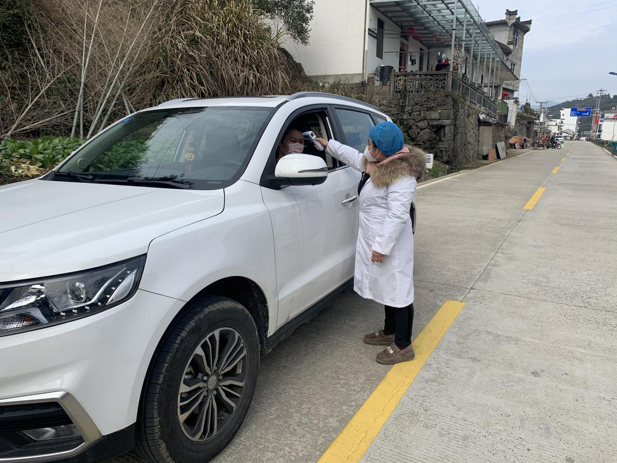 “您從哪兒返鄉?”“有發熱、咳嗽等症狀嗎?”這是徽州區楊村鄉衛生院院長耿麗麗20多天來最常說的話,剛從重點人員家中監測體溫結束後回到院裏,還沒休息片刻,一接到有返鄉人員要進行居家隔離的消息,就帶上體溫計等設備,穿戴好口罩,拿上記錄本沖上了一線。