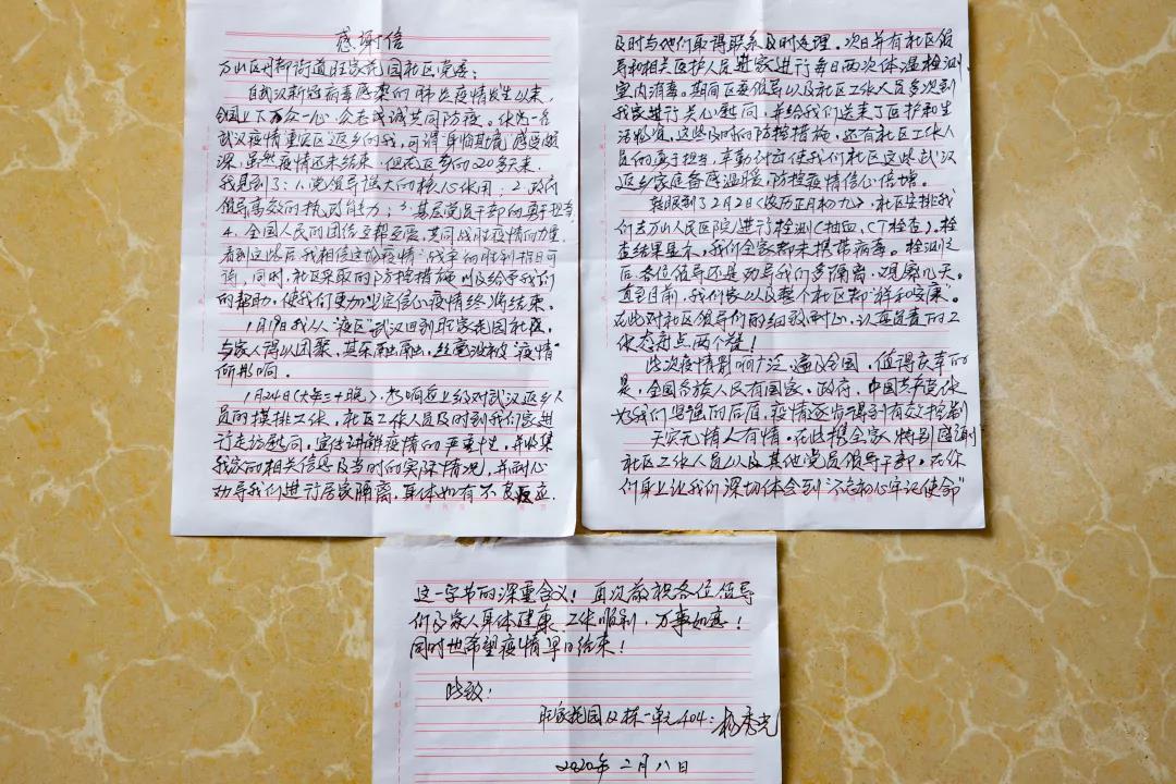 「隔離之後,他們每天都上門給我們量體溫,家庭消毒,並且送上一些相關的物資,我內心感到很溫暖,在此情況下,我就發自內心寫了一封感謝信,表示我內心對旺家花園相關工作人員一份感激之心。」楊秀光感動地說道。
