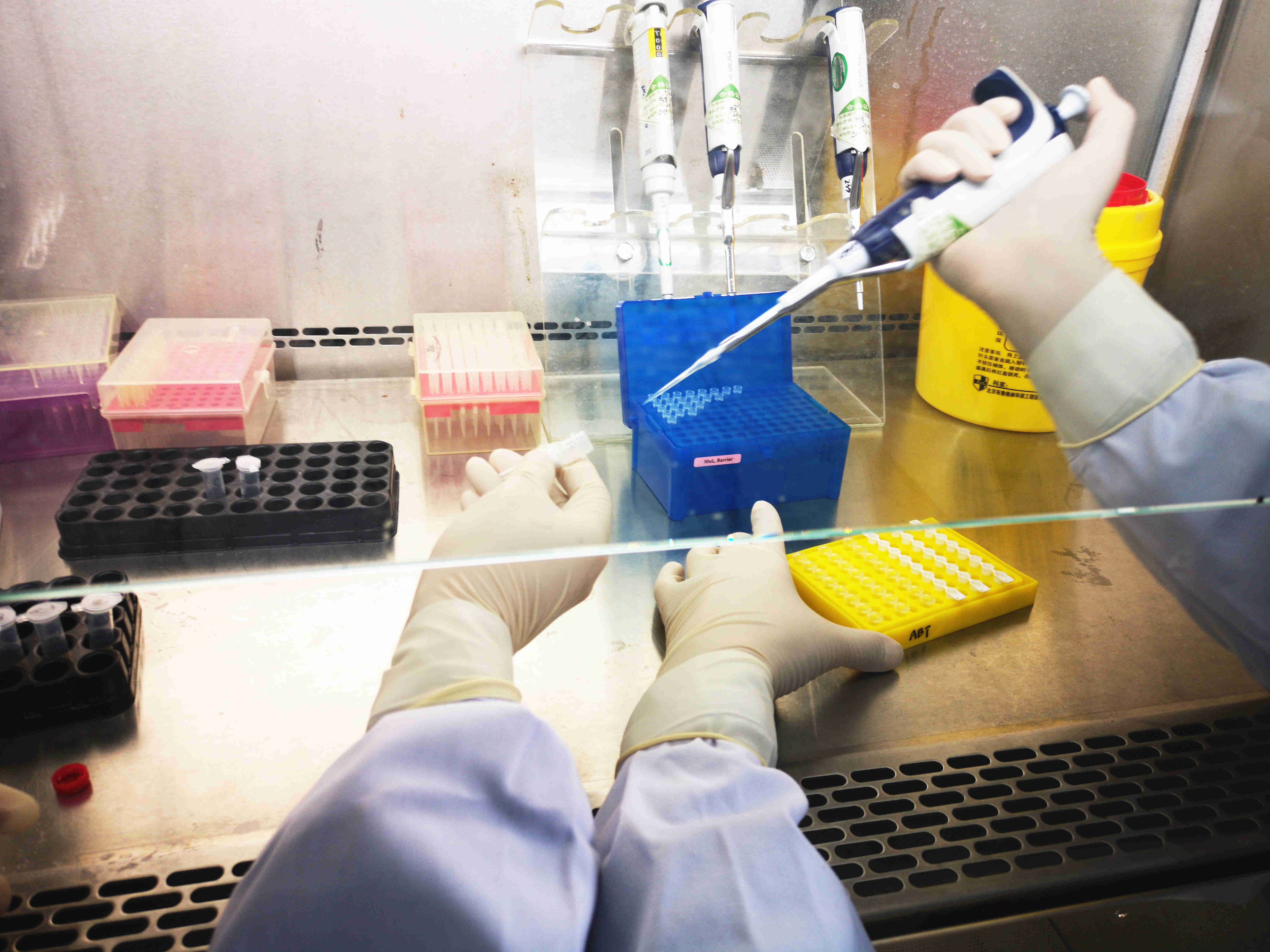 朱風雷介紹說,標本含量極高的污染源,具有肉眼看不見的高風險。在實驗室里,任何一個細節的疏忽都可能引發被感染的風險,只有嚴謹的工作態度和熟練的技術操作才能保障檢測結果準確無誤。每送來一個樣本,需要三個人一起分工協作,兩個人穿好防護服進入實驗室進行核酸提取,一個人穿工作服在清潔區進行核酸檢測,每例標本檢測從核酸提取到儀器檢測全過程至少要4個小時,再加上穿脫工作服和消毒的程序,往往工作起來就要堅持7個小時。