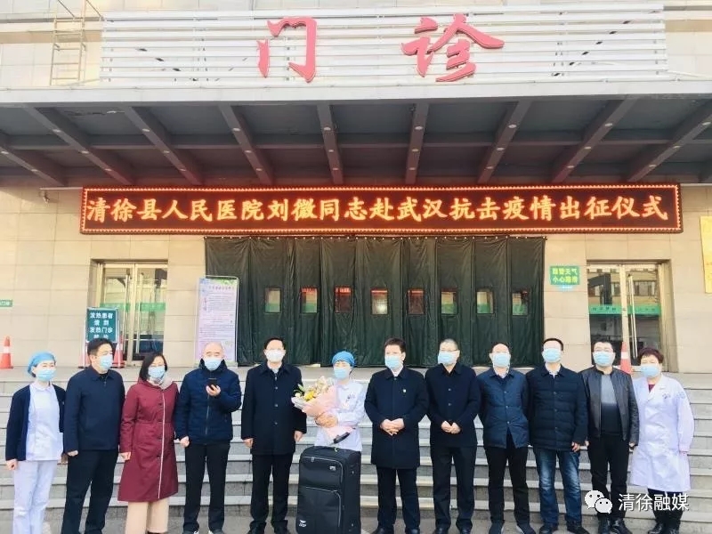 當日下午,劉微啟程前往武漢疫區。她是繼該縣醫院楊瑗、清徐籍梁夏(兩人均在太原市第四人民醫院“戰鬥”)之後,又一個清徐籍赴疫情一線的醫護工作者,也是清徐縣首個赴武漢疫情重災區工作的醫護人員。