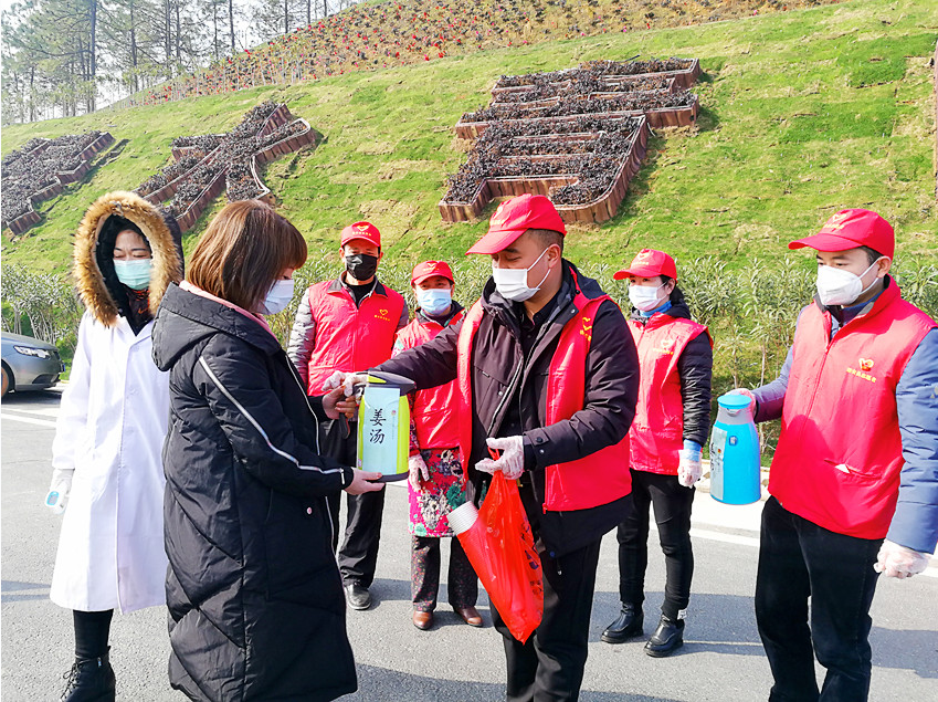 「多喝點薑湯,戴好口罩,防疫的同時也要做好自我防護,還有生活上的什麼需求寫在這個紙條上,我們青年志願者努力服務……」這幾天,在德安縣城區高速公路口、火車站、105國道、共安大道等體溫監測點,當地青年志願者自發籌集資金購買食材,將熬制好的愛心薑湯送到城區各防疫卡口執勤人員手中,讓防疫一線人員倍感溫暖。