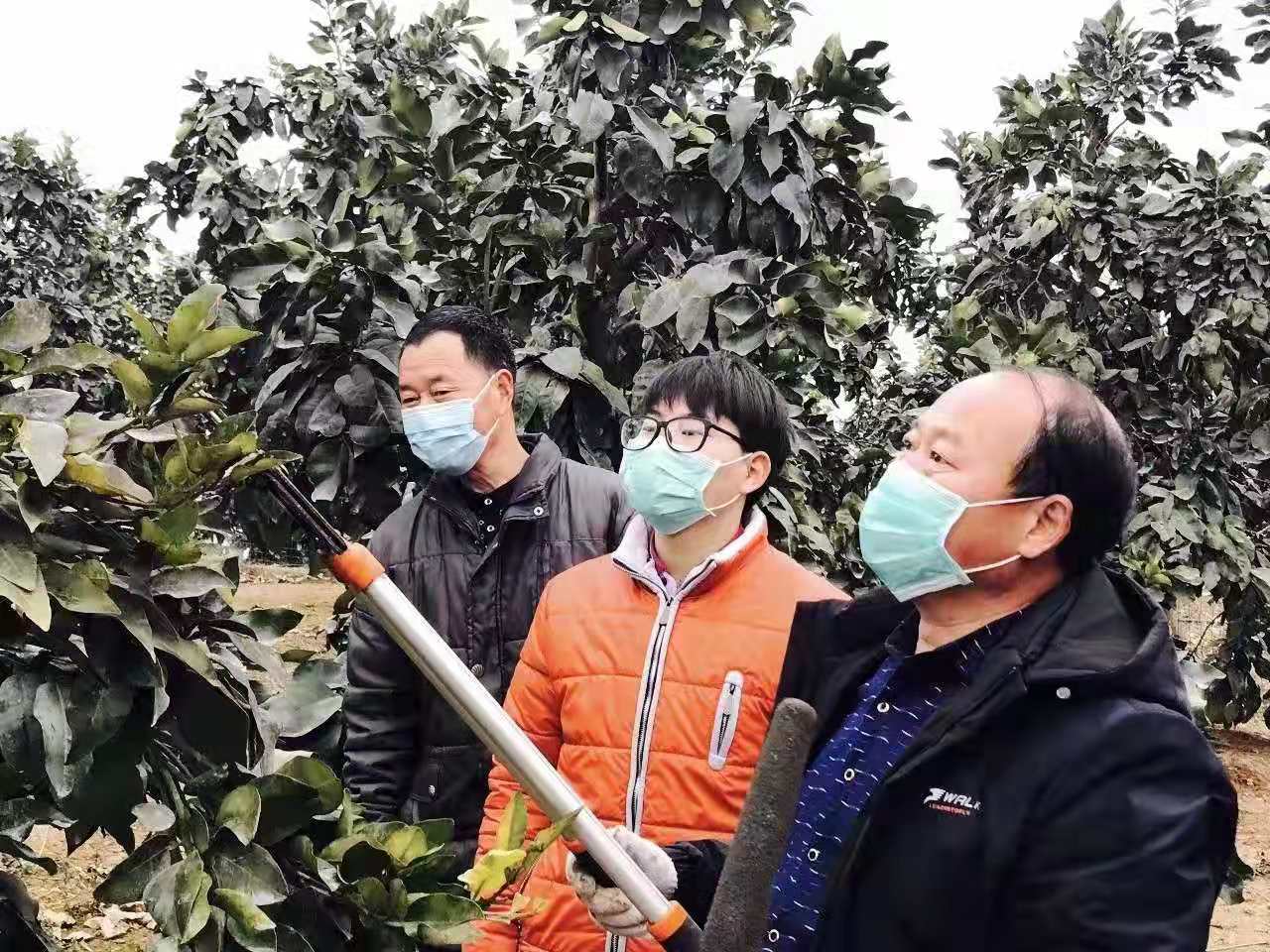 當前是蜜柚春管的關鍵時期,在許州鎮天寶村蜜柚基地內,村黨支部書記、蜜柚種植技術員杜福俊正在給幾戶種植戶講解蜜柚春剪技術。天寶村90%以上的農戶都種植有蜜柚,種植戶年收入超過兩萬元。春季蜜柚管理的好與壞,直接關係到2020年的收成。