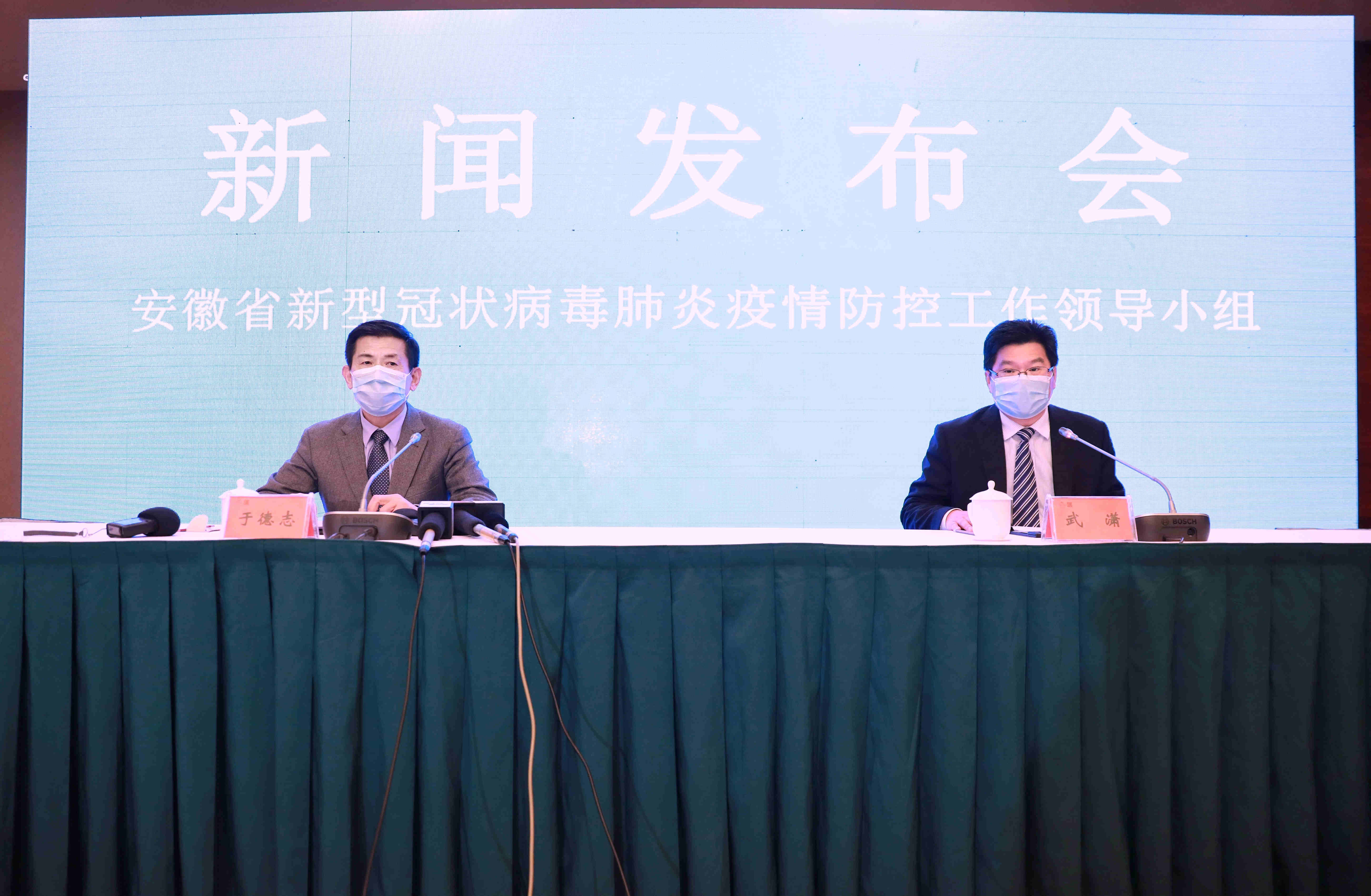 發佈會現場。安徽省發展改革委副主任於德志發佈相關情況並答記者問(左),安徽省委宣傳部新聞發佈處處長武瀟主持發佈會