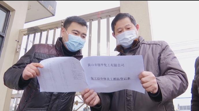 德平化工黨支部書記蔡章軍一邊回復微信一邊說道,“採用微信和電話的方式,每天瞭解員工的動態及身體情況,關心並時刻提醒員工嚴格服從社區鄉鎮的統一管理,企業作為責任主體,也是積極回應縣委縣政府的號召,積極捐款,也體現了企業的社會責任感。接下來我們進一步努力,一定能打贏這場攻堅戰。”(吳敏 吳燦 鄭建峰)