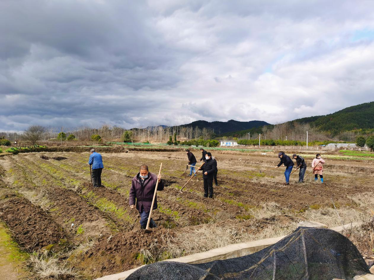 一年之計在於春,2月13日,雨後初霽,潛口鎮澄塘村田野家庭農場一派搶抓農時的繁忙景象,鎮村幹部和農場負責人正提醒下地耕種的村民們做好防護、分散作業、科學耕種。
