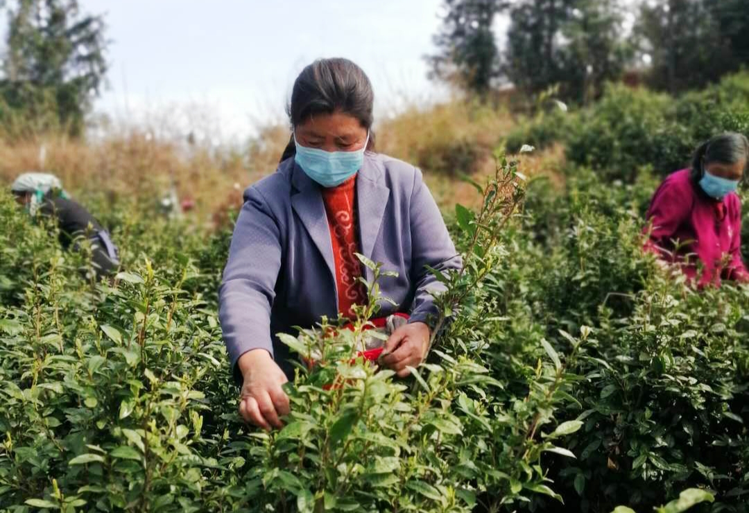 一眼掃過,採摘工人手上的動作並未慢上半分,定睛一看,今年這一季忙碌同往年卻有些區別——茶農們都戴上了口罩,也不再三五成群聚集採摘,彼此間隔在2米開外。