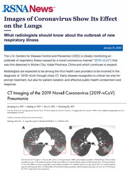 今年1月31日,甘肅省科研攻關成果祁小龍教授作為通訊作者、雷軍強教授作為第一作者的《2019-nCoV肺炎確診病例CT影像特徵》在國際放射學首位期刊Radiology在線發表;同期,北美放射學會(RSNA)發布官方新聞引用蘭州大學第一醫院COVID-19臨床研究團隊成果,建議:“放射科醫師作為一線醫護團隊協助2019-nCoV的早期診斷,這不僅有利於疾病的早期治療,還將對病人隔離及有效的公共衛生響應起到關鍵作用”。同時呼籲全球放射醫師關注新冠肺炎的CT影像表現。
