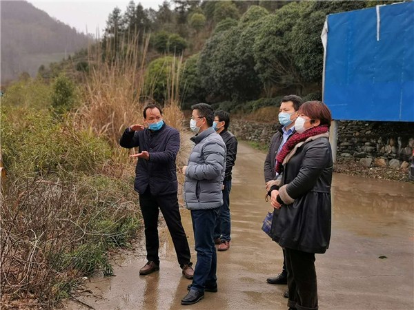 2月15日,歙縣縣委書記李忠(中)赴杞梓裏鎮調研茶企復工複產準備情況