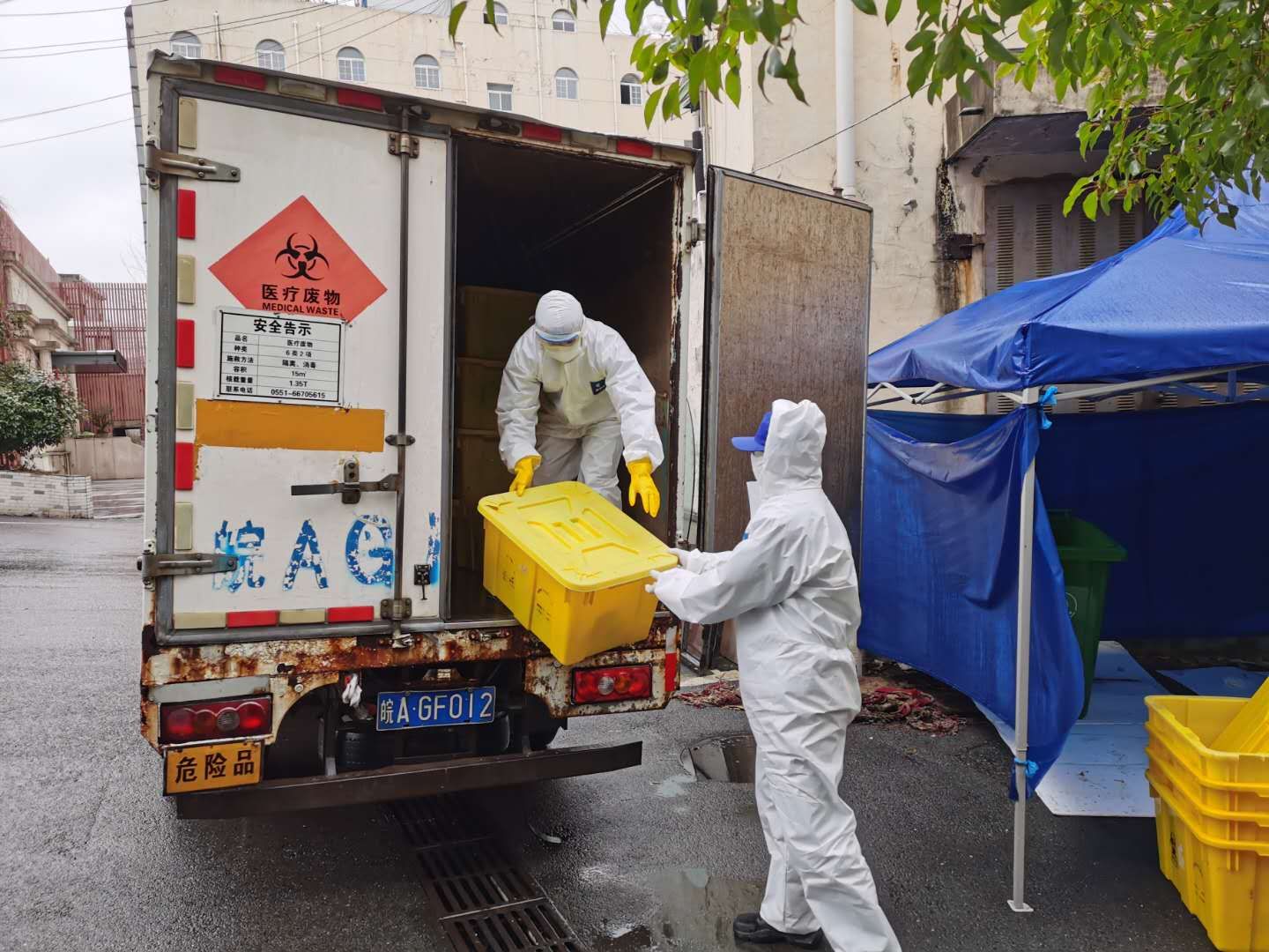 在位於南二環與金寨路交口的密接人員集中醫學觀察點,觀察點的醫療垃圾由合肥市浩悅科技有限責任公司負責專業化清運處理。「我們每天產生大約20公斤重的醫療垃圾,包括醫護人員的防護服、口罩、一次性手套等防護用品和密接人員使用過的口罩等物品。」據該集中觀察點工作組相關負責人介紹,集中觀察點的醫療垃圾嚴格按照傳染病醫院的醫療垃圾處置流程進行處理。
