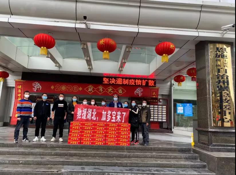 2月14日加多寶集團接力向解放軍中部戰區總醫院、湖北省第三人民醫院、麻城市人民醫院、羅田縣人民醫院、黃岡市中心醫院、咸寧市第一人民醫院、利川市人民醫院、利川市東方和諧醫院、恩施市中心醫院、襄陽市中心醫院、宜城市人民醫院、棗陽市防疫指揮部、丹江口市第一醫院、丹江口市漢江醫院、丹江口市防疫指揮部、鍾祥市人民醫院、鍾祥市同仁醫院、監利縣中醫院捐贈加多寶涼茶飲品共8100箱,2月16日繼續向漢川市、應城市、宜昌市捐贈共計1500箱,向奮鬥在抗「疫」一線的英雄們致敬,為他們袪火防毒,強身健體,助力抗擊疫情。