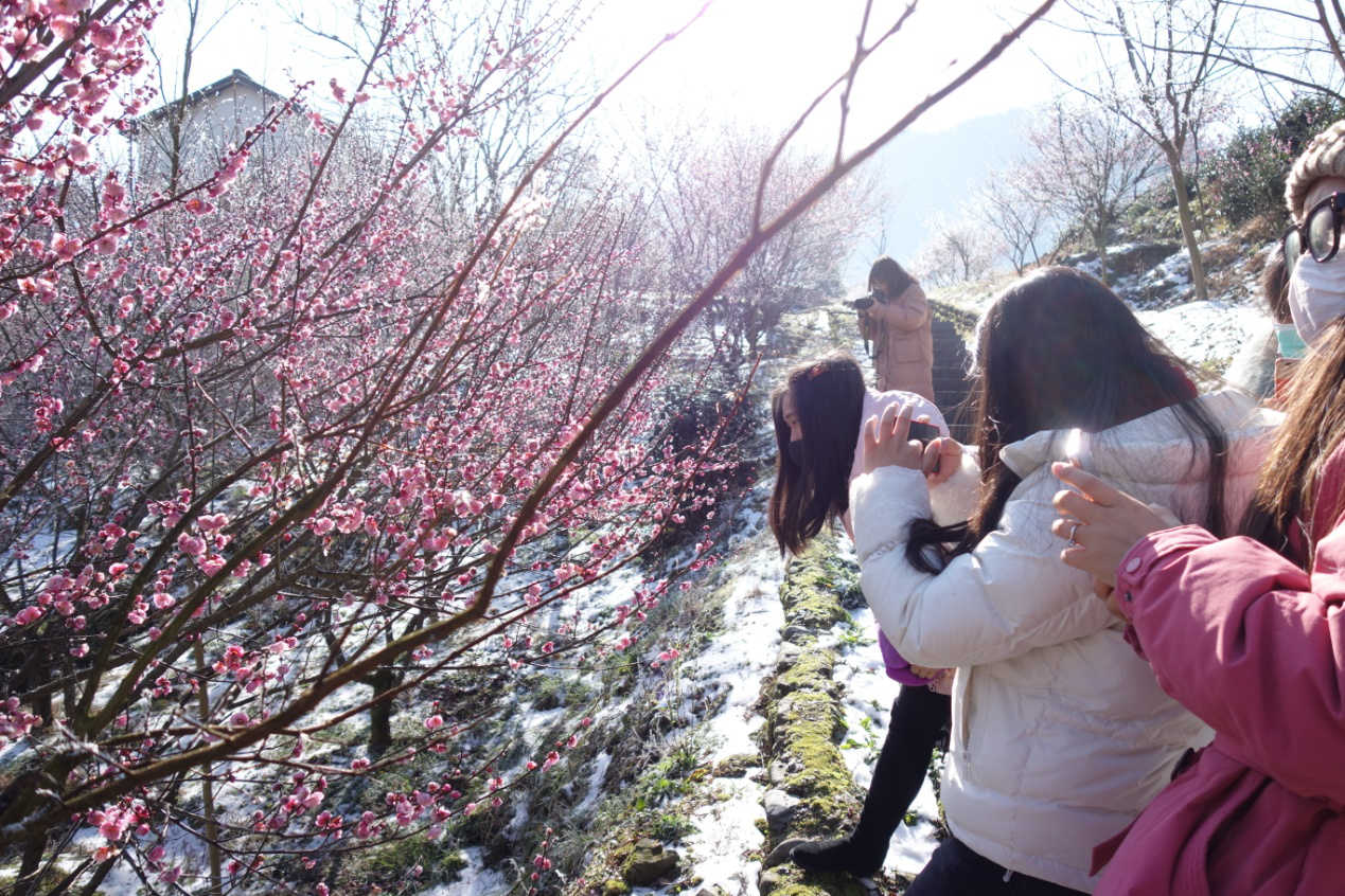 【香港商報網訊】安徽黃山市黃山梅園坐落在530國道的黃山區焦村鎮山河村,有紅梅、墨梅、白梅、臘梅、綠梅等1000餘株,占地百餘畝,各色品種的梅花在雪後初晴的藍天掩映之下競相綻放,本就惹眼的花瓣顯得更加絢麗無比。微風拂過,一個個玲瓏小巧的花苞,傲立枝頭,寒風中搖曳生姿,不時飄來淡淡清香,沁人心脾,展示了濃濃的初春氣息,成為黃山腳下一道靚麗風景。(吴敏 王士哲 崔豔)