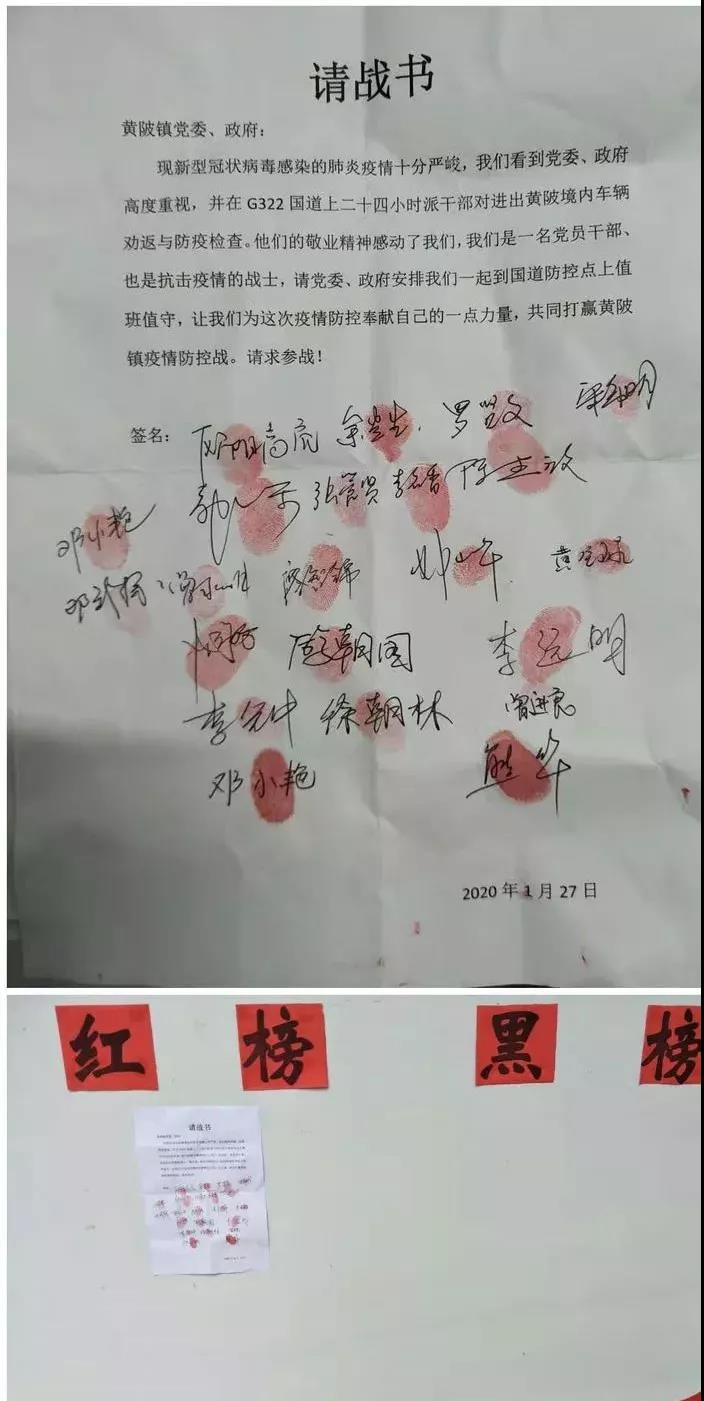 黃陂鎮將主動請戰的黨員幹部在紅榜公佈