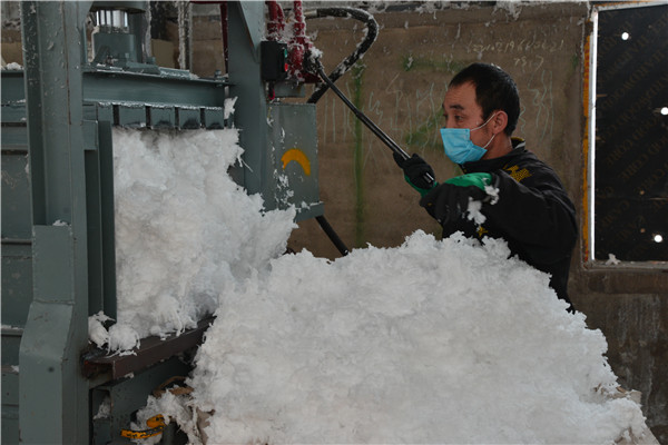 張漢凱說:“我們這個車間主要生產成品棉和成品棉打包,春節期間我們在抓好新型冠狀病毒感染疫情防控的同時,大家正常上班生產!”